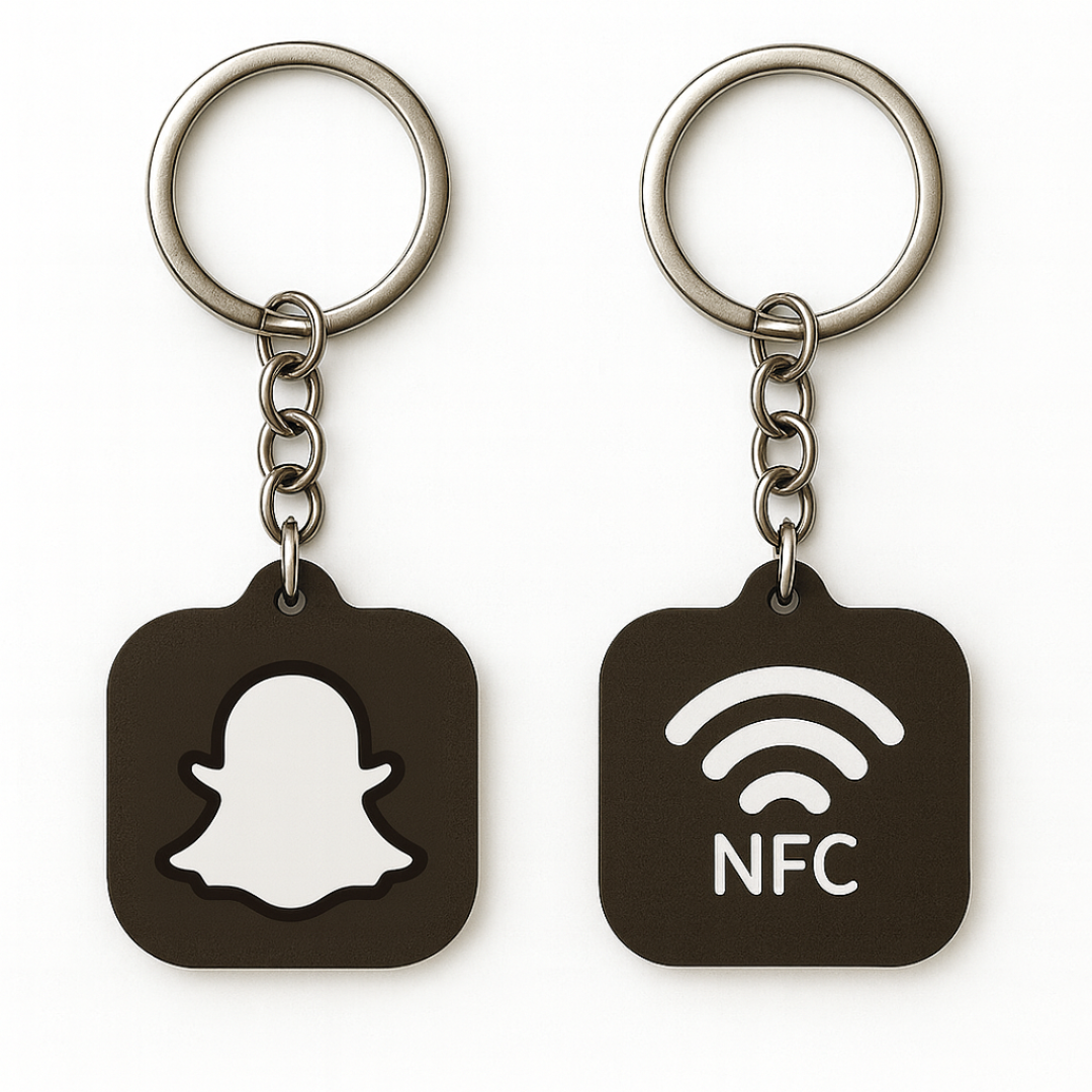 Przyłóż SmartBrelok do tylnej/przedniej (w zależności od telefonu) części smartfona osoby, z którą chcesz się połączyć. Bez skanowania kodów QR, bez parowania, bez aplikacji – po prostu zbliżasz i działa!